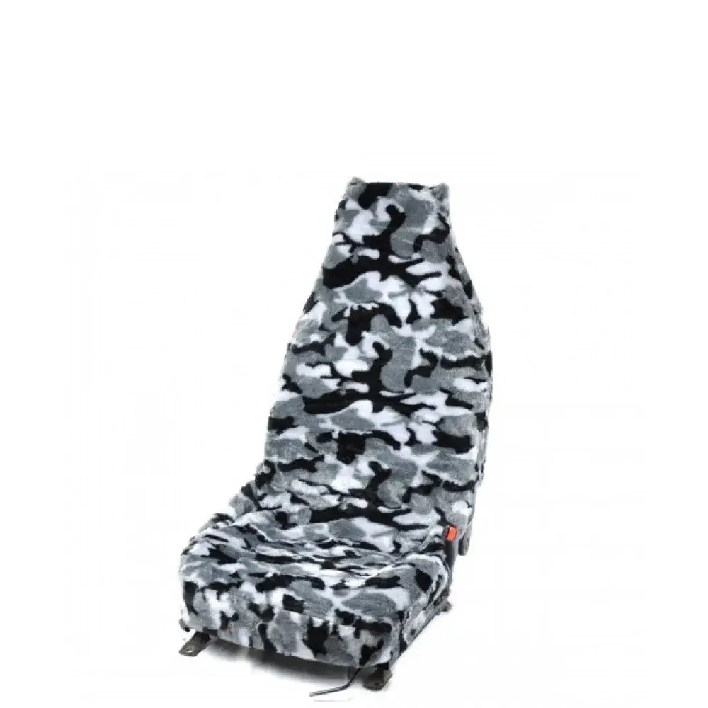 Чохли салону автомобіля універсальні хутряні комплект перед+зад камуфляж сірий